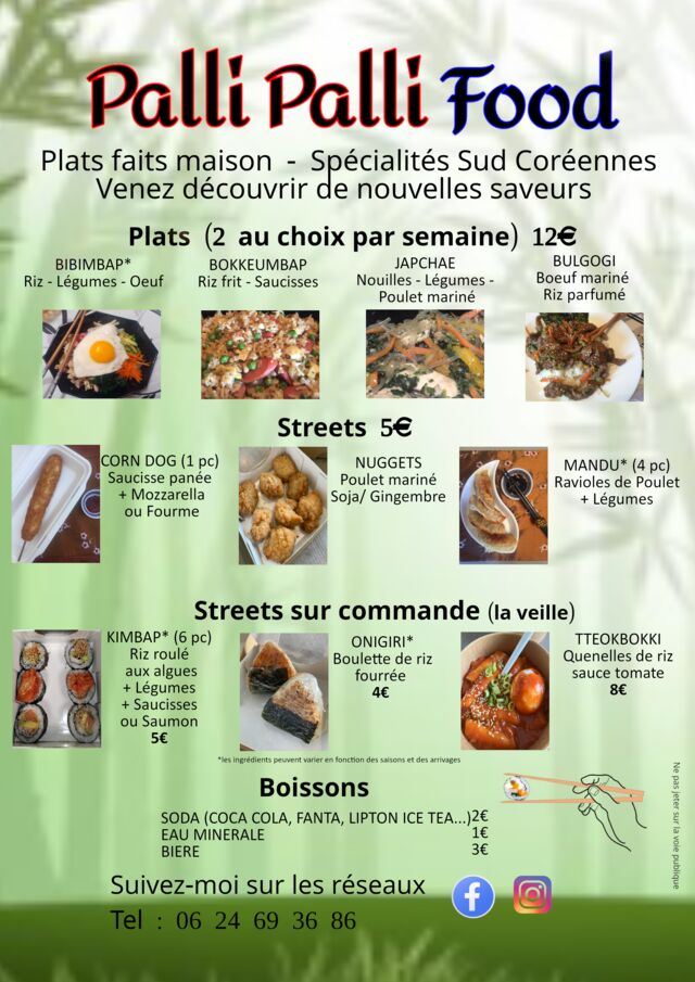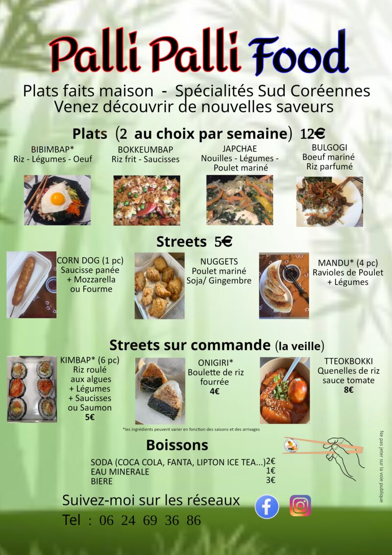 "Palli" signifie "vite" en coréen, alors viens vite découvrir le Japchae, le Bokkeumbap et autres saveurs 😉